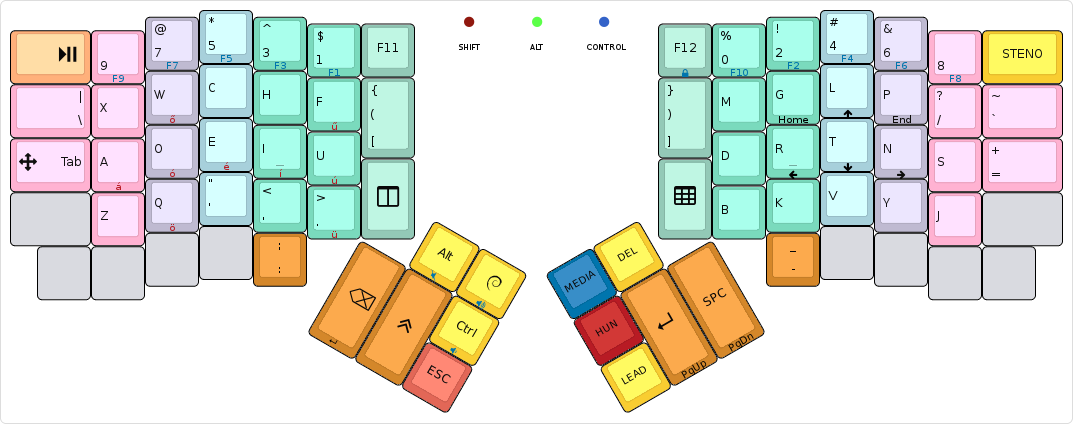 ADORE ----- * Major rearrangements were made, to reduce pinky use, and to balance out the hand usage. Tools ----- * The `hid-commands` tool will now display a notification when the **AppSel** layer is triggered. * The `log-to-heatmap.py` tool now treats the innermost keys on the bottom row as thumb keys, as far as statistics are concerned. Miscellaneous ------------- * Fixed the **Steno** toggle key. * My wife is now present on the keyboard too. Signed-off-by: Gergely Nagy <algernon@madhouse-project.org>
